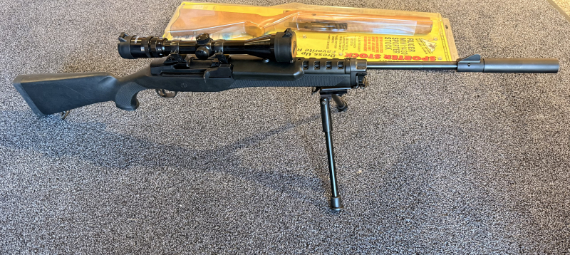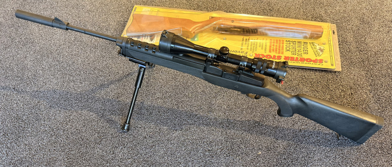 Jagdwaffen > Büchsen > Repetierbüchsen Ruger Mini 14 Selbstaldebüchse in cal. 223Rem mit Optik und Zweibein / einmal Holz einmal KunststoffeGun-ID: 20223501 - Artikel-Nr des Verk.: Wb Nr