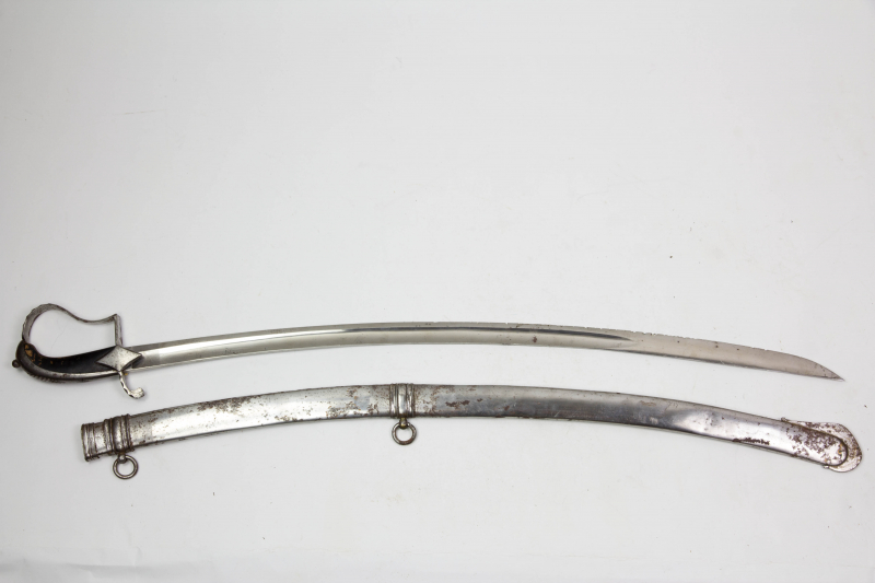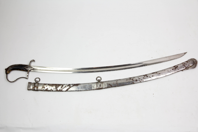 Husaren-Säbel, wohl Russland, um 1800, Steigbügelgefäß, fein gerilltes und schwarz lackiertes HolzgreGun-ID: 20224089