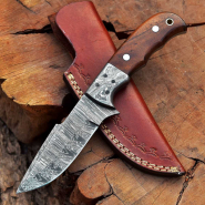 Damast Jagdmesser schöne Klingenmaserung Damast Stahl mit Lederhülle 7866158eGun-ID: 20224488