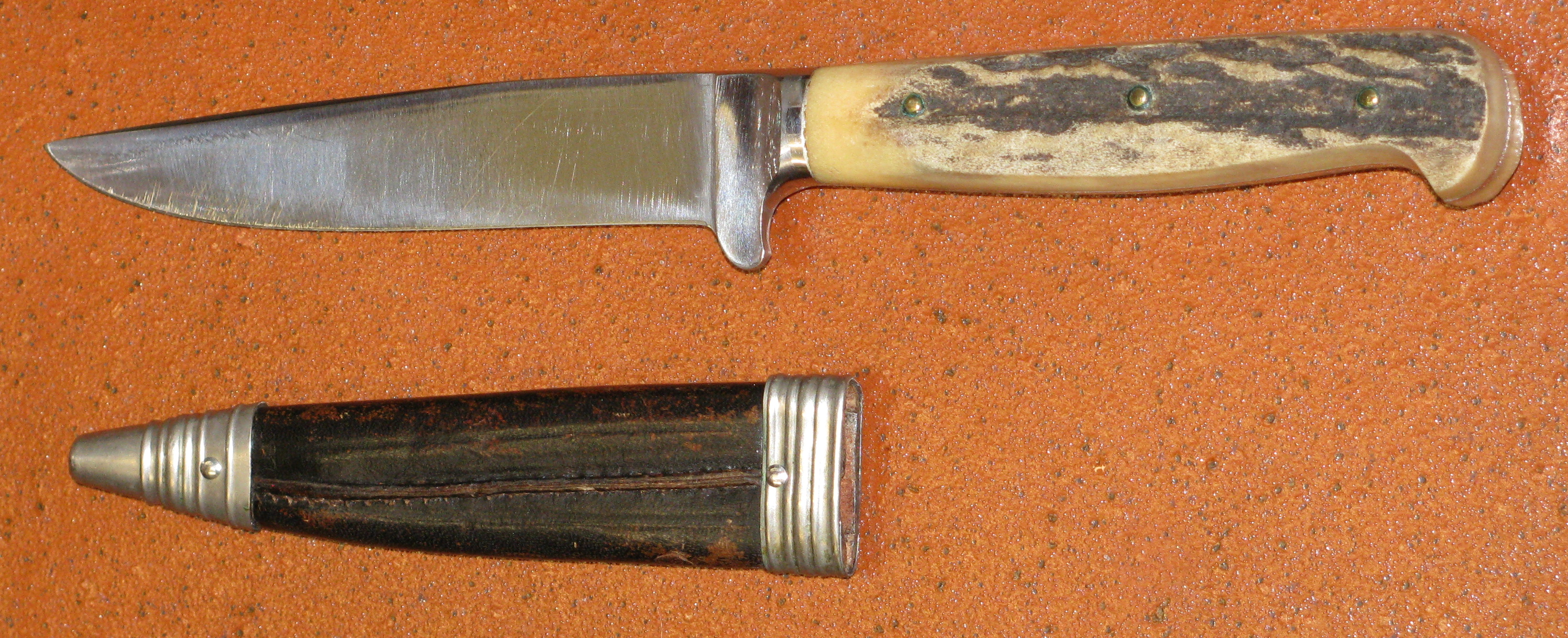 Altes Jagdmesser mit Horn und LederscheideeGun-ID: 20225340 - Artikel-Nr des Verk.: Neu 7