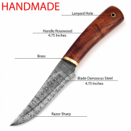 Custom Handmade Damascus Steel Hunting Bowie Knife gefärbtes Knochen und Rindleder #99eGun-ID: 20225814