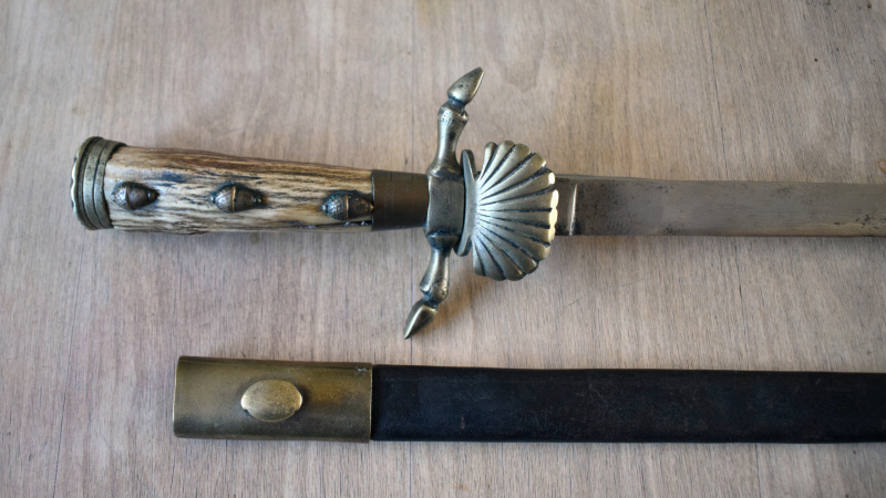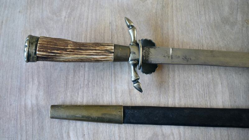 Antiker Hirschfänger mit LederscheideeGun-ID: 20227618