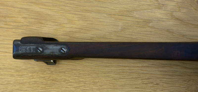 Sammlerwaffen/-munition > Kurzwaffen > 1900 - 1945 Original Anschlagbrett Pistole 08 Ari Lang – WK1 Kaiserreich – nummeriert 9651 – SammlerstückeGun-ID: 20228397