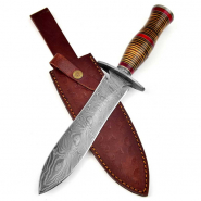 Damast Jagdmesser schöne Klingenmaserung Damast Stahl mit Echt Lederhülle MAQ4533eGun-ID: 20229377