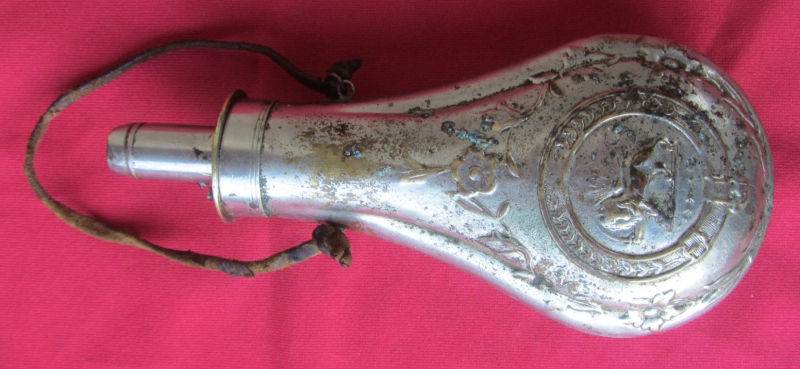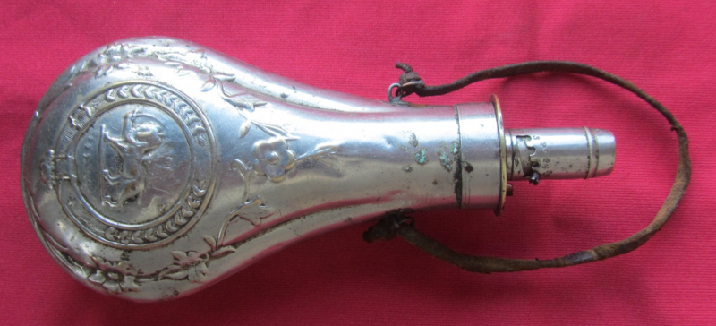 Antikes Pulverhorn-Pulverflasche-Metall–reichlich verzierteGun-ID: 20229534
