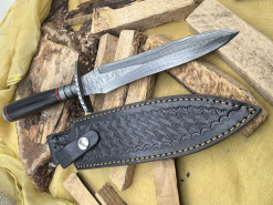 Handgefertigtes Damast-Bowiemesser. Jagdmesser. Survivalmesser. Outdoormesser. Mit Scheide.eGun-ID: 20230804 - Artikel-Nr des Verk.: FA784