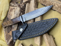 Handgefertigtes Damast-Bowiemesser. Jagdmesser. Survivalmesser. Outdoormesser. Mit Scheide.eGun-ID: 20231709 - Artikel-Nr des Verk.: FA788
