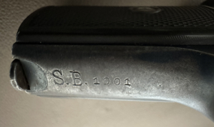Pistole Sauer & Sohn Mod.13 7,65mm SN 55072 Polizeistempelung "S.B.1001" Lederholster NitrobeschußeGun-ID: 20232977