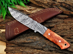 Damast Jagdmesser schöne Klingenmaserung Damast Stahl mit Lederhülle 7861922eGun-ID: 20233174