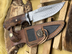 Handgefertigtes Damast-Bowiemesser. Jagdmesser. Survivalmesser. Outdoormesser. Mit Scheide.eGun-ID: 20233818 - Artikel-Nr des Verk.: FA589