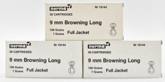 150 Norma Patronen Kal. 9mm Browning Long 108gr.eGun-ID: 20233971 - Artikel-Nr des Verk.: MWST-BK