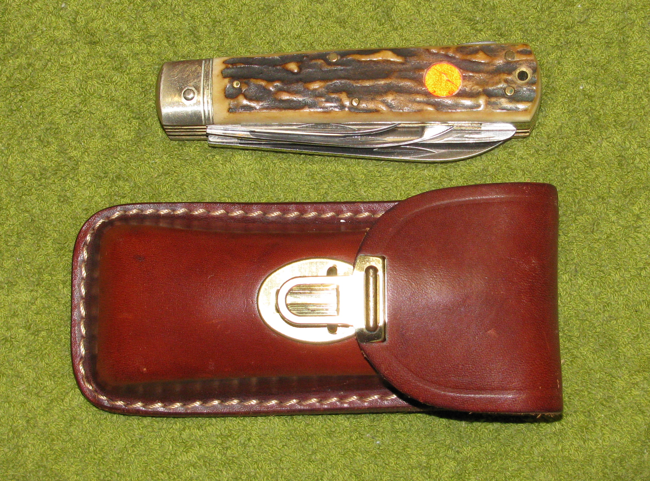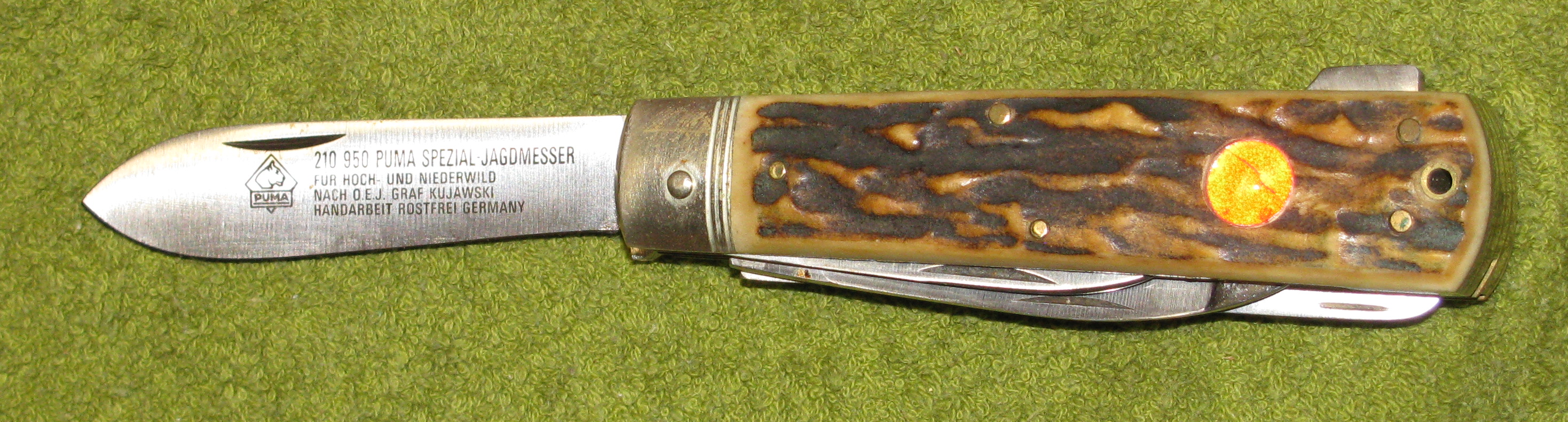 Unbenutztes PUMA Taschenmesser mit Horn und Lederscheide, Nummer 28491eGun-ID: 20234864 - Artikel-Nr des Verk.: Neu 1