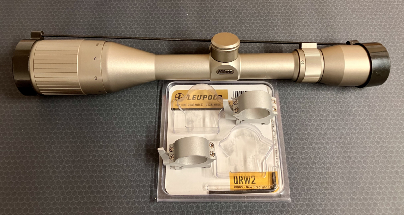 Nikon Titanium 5,5-16,5x44 Duplex Absehen "made in Japan" mit silbernen Leupold QRW Picatinny RingeneGun-ID: 20235385