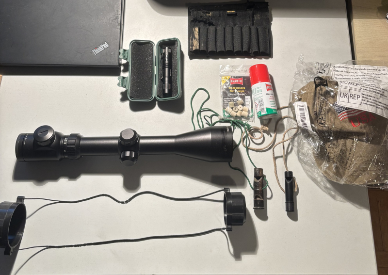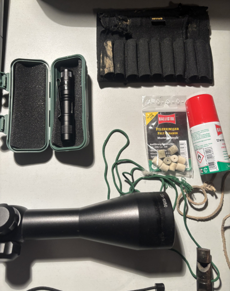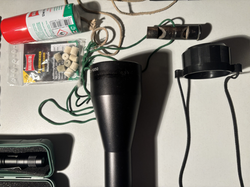 Konvolut Jagdzubehör Zielfernrohr Hundepfeife Lampe BallistoleGun-ID: 20239800