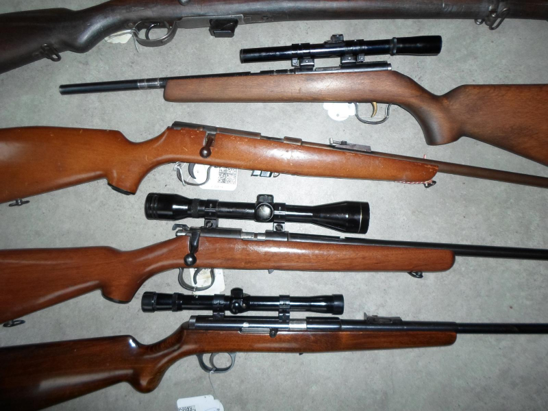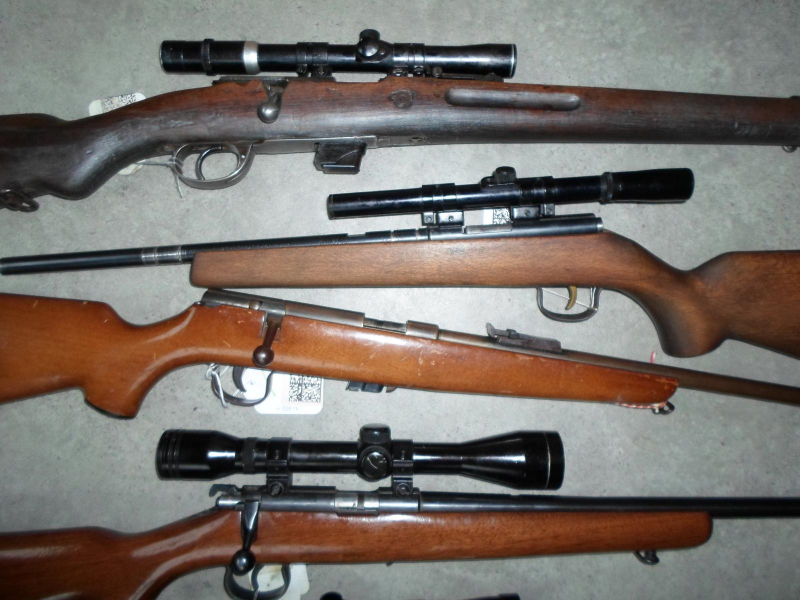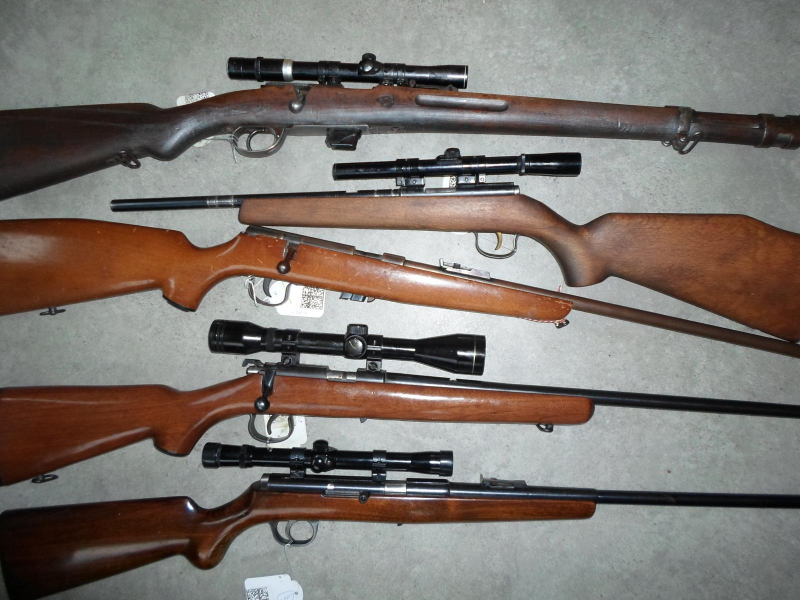 4 Kleinkalibergewehre .22 l.r, 1 Repetierbüchse .22 WMReGun-ID: 20240558 - Artikel-Nr des Verk.: o 118
