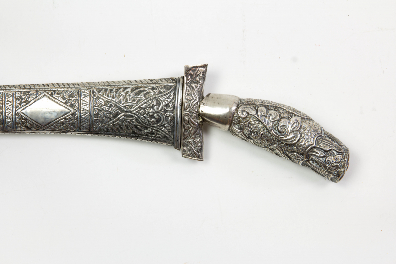 Pedang, Dolch, Indonesien/Java, 19./20. Jh., Griff aus Silberblech, getrieben und reichlich verzierteGun-ID: 20244484