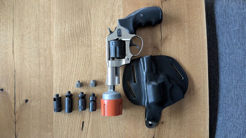 Röhm RG 89 N Revolver 9mm P.A.K + Noris Multi-Signal Abschussbecher + Leder-HolstereGun-ID: 20244565
