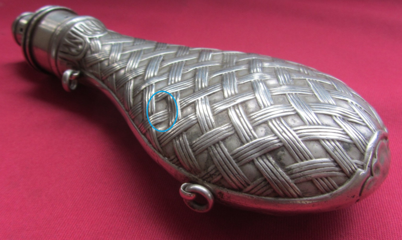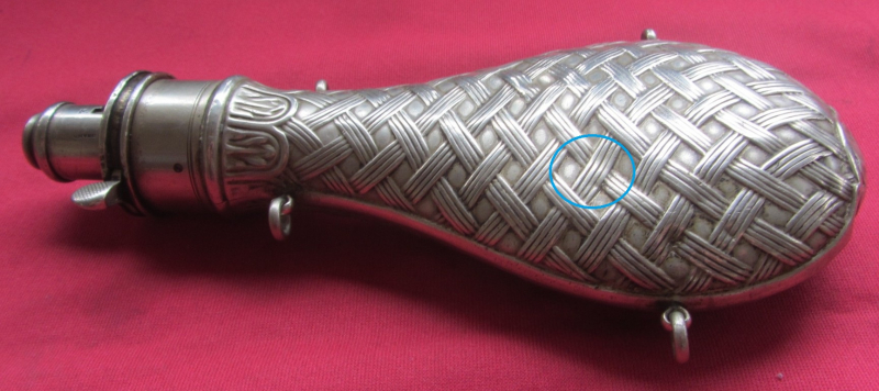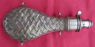 Antikes Pulverhorn – Pulverflasche - Metall – HAWKSLEY- TOPeGun-ID: 20245522