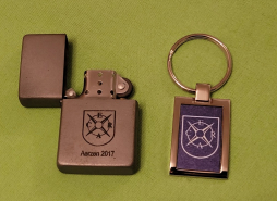 Sturmfeuerzeug und Schlüsselanhänger ECRA European Cartridge Research Association Aerzen 2017 BenzineGun-ID: 20245885 - Artikel-Nr des Verk.: 49