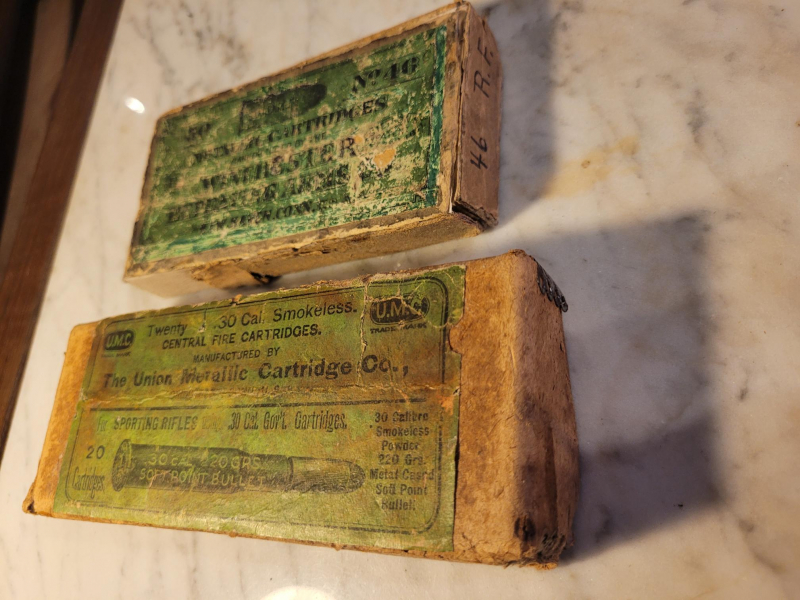 2 alte US Patronenschachteln .46RF Winchester + .30 Gov't U.M.C.eGun-ID: 20245918
