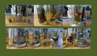 6-teiliges Gläser Set mit Bierkrug Zinndeckel Reh Hirsch Enten Fuchs WildschweineGun-ID: 20245960