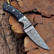 Damast Jagdmesser schöne Klingenmaserung Damast Stahl mit Lederhülle 7294eGun-ID: 20250221