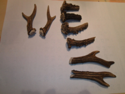 2 Rehstangen mit 2 Enden 10 /11 cm + 6 kleine Geweih-Reststücke = 235 Gramm (Hirschhorn)eGun-ID: 20250314 - Artikel-Nr des Verk.: 19