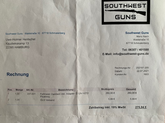 Zweibein Fortmeier incl- Adapter 12 Uhr H210eGun-ID: 20251058