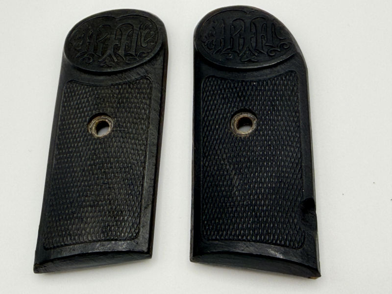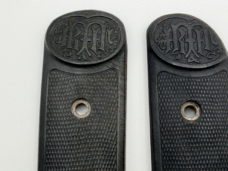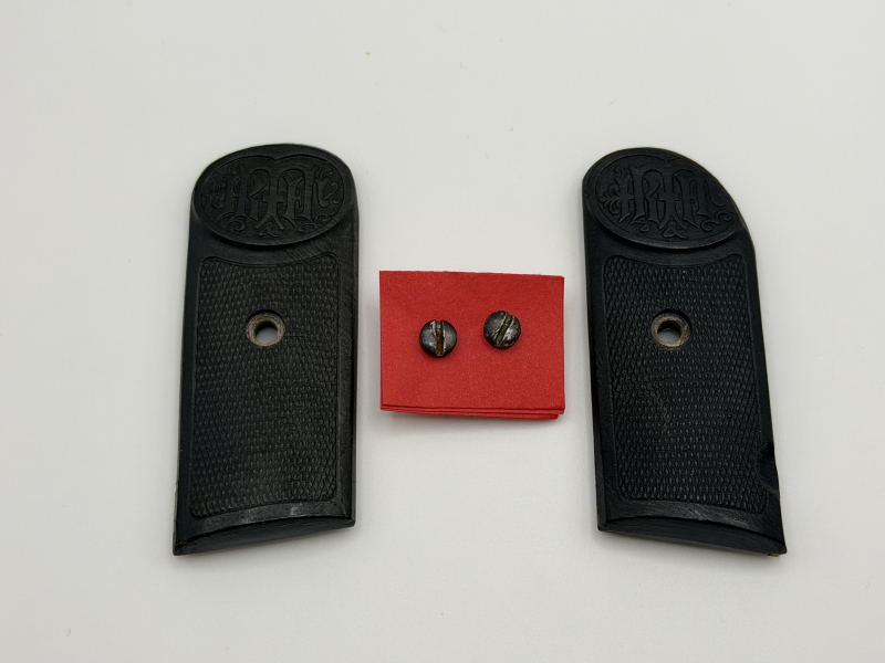 Sammlerwaffen/-munition > Kurzwaffen > 1900 - 1945 Original Griffschalen Dreyse Rheinmetall 1907 – 7,65 mm – inkl. Schrauben – VorkriegeGun-ID: 20251961
