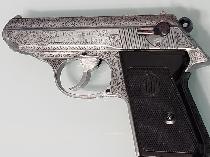 Sammlerwaffen/-munition > Kurzwaffen > 1900 - 1945 Absolute Rarität: Erma EGP 75 S stainless voll graviert PTB 69/4 Kal. 8mmK Rarität!!!eGun-ID: 20253294