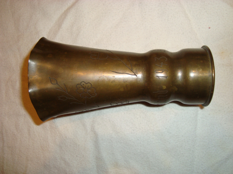 5,5cm Granathülse als Vase, zum Andenken an Russlandfeldzug 1943eGun-ID: 20254245 - Artikel-Nr des Verk.: 3
