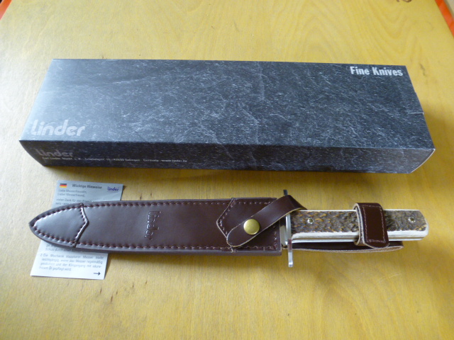Linder - Hirschfänger I - Nr. 442623 - Hirschhorn - Griffschalen - Lederscheide in OVPeGun-ID: 20254376
