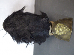 Alte hohe Bärenfell Mütze Original? Messingschild mit aufgesetzten Doppeladler Schild ist abgegangeneGun-ID: 20254564