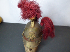 Alter Militär Messinghelm Frankreich? hoher Messingkamm mit Frauenkopf Vorne aufgelegte GranateeGun-ID: 20254709