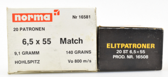 40 Norma Patronen 6,5x55 - 9,1g. Hohlspitz MatcheGun-ID: 20255482 - Artikel-Nr des Verk.: MWST-BK