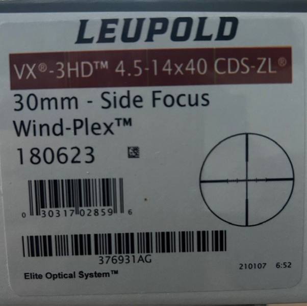 Schießsportausrüstung > Zieloptiken > Zielfernrohre LEUPOLD VX-3HD, 4,5-14X40, CDS-TURM, wind-plexeGun-ID: 20256811