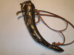 Spanische Pulverflasche / Pulverhorn, Metallversionen, Messing bzw. Messingfarben, zu dekorativen ZweGun-ID: 20258308 - Artikel-Nr des Verk.: 35