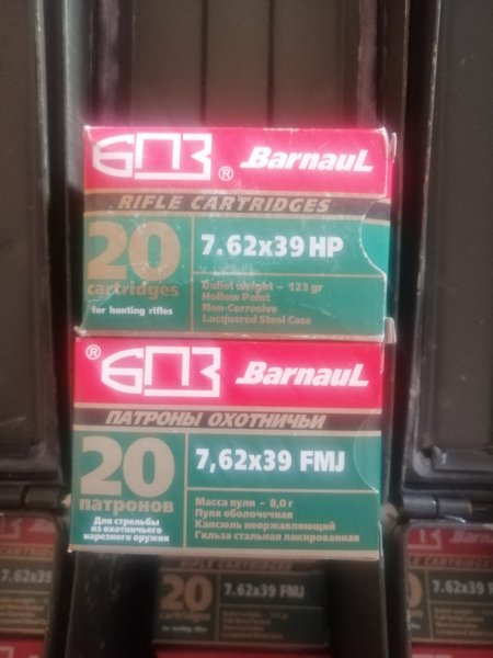Munition > Sport > 4 mm - 8 mm 7,62x39 Barnaul 123grs FMJ & HP nicht korrosiv OVP / neu – WBK-pflichtig ->880 Schuss insgesamteGun-ID: 20258420