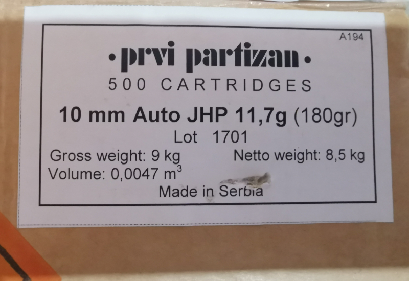500 Patronen Kaliber 10mm Auto PPU Prvi 180 gr. JHPeGun-ID: 20258722