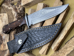 Handgefertigtes Damast-Bowiemesser. Jagdmesser. Survivalmesser. Outdoormesser. Mit Scheide.eGun-ID: 20259201 - Artikel-Nr des Verk.: FA856