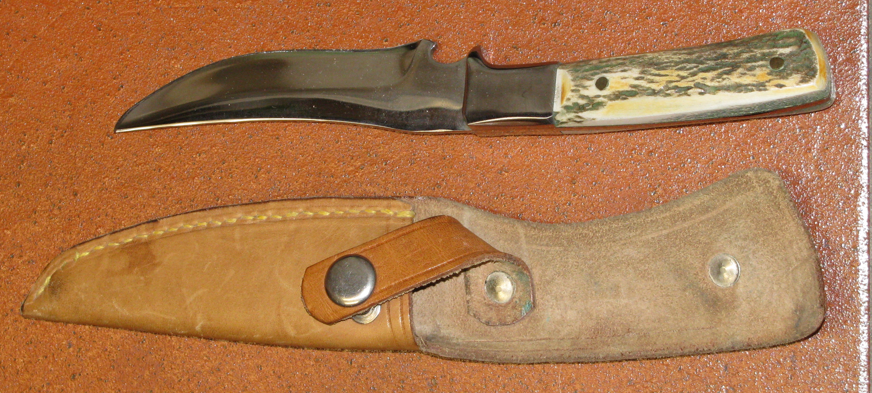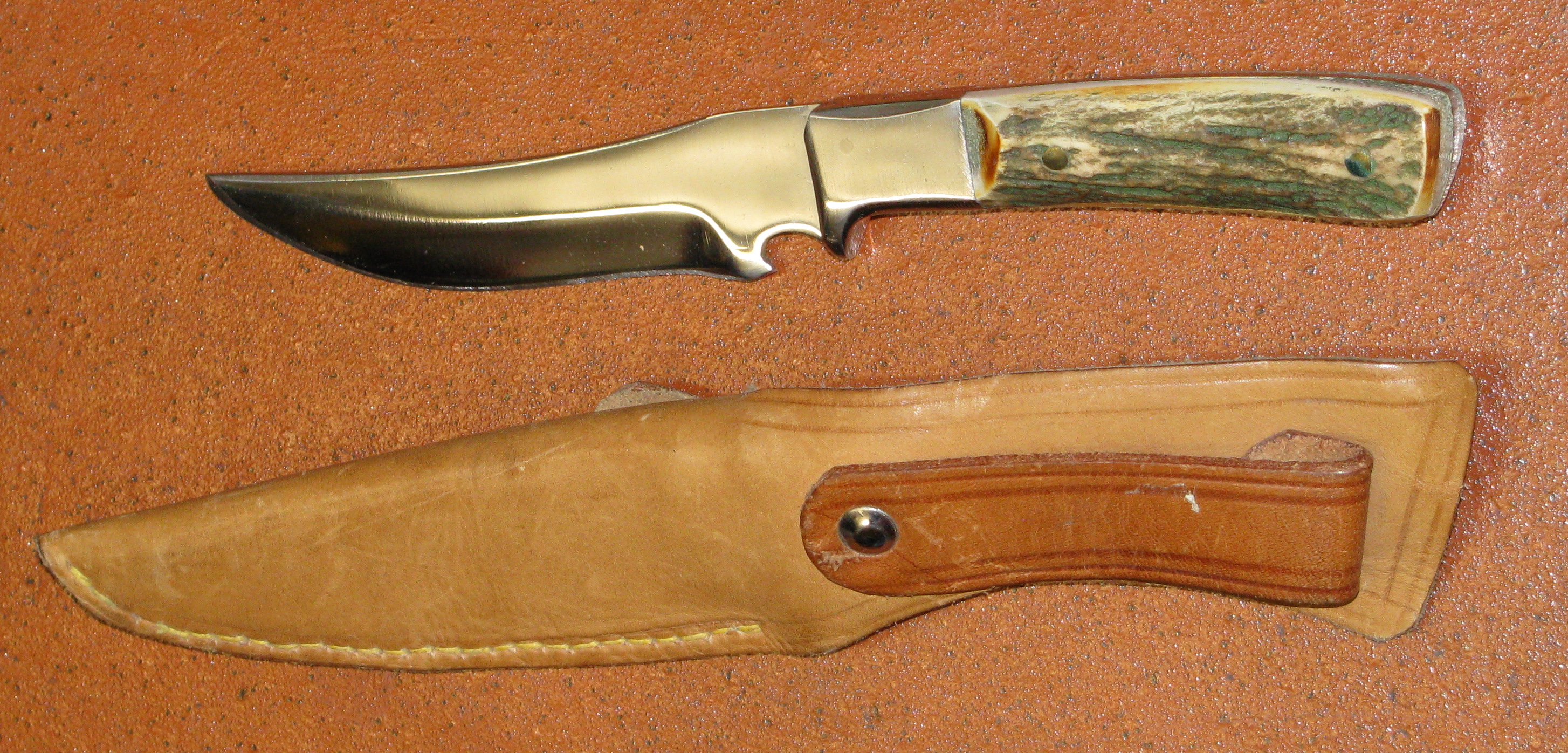 Jagdmesser mit Horngriff und Lederscheide / Länge Messer ca. 22cmeGun-ID: 20260060 - Artikel-Nr des Verk.: Neu 6