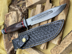 Handgefertigtes Damast-Bowiemesser. Jagdmesser. Survivalmesser. Outdoormesser. Mit Scheide.eGun-ID: 20260073 - Artikel-Nr des Verk.: FA857