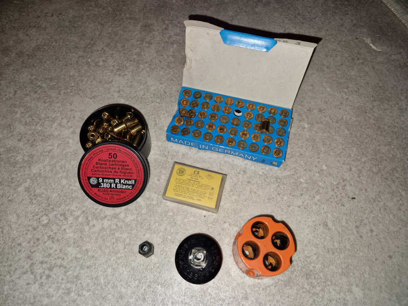 Gute alte Platzpatronen / Kartuschen 9mm R .380, + Gas von 1989 + Multischooter, Anschauen!eGun-ID: 20260927