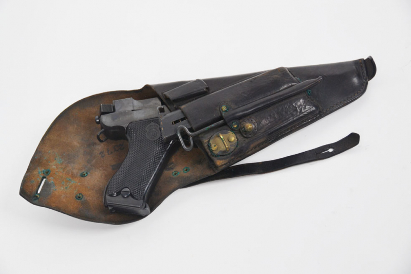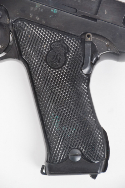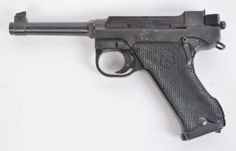 Sammlerwaffen/-munition > Kurzwaffen > 1900 - 1945 Selbstladepistole Husqvarna M40/S, 9mmLuger, Original Ledertasche, Reservemagazin, WerghaltereGun-ID: 20262557 - Artikel-Nr des Verk.: 0000
