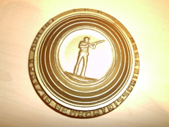 Goldfarbene Tontaubennachbildung aus Metall, Durchmesser 11 cm, Höhe 2,5 cm. Abbildung SchützeeGun-ID: 20266229 - Artikel-Nr des Verk.: 45