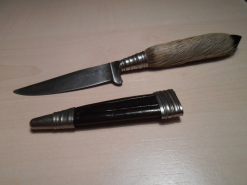 Kleines Jagdmesser, Brotzeitmesser, Trachtenmesser mit Rehfuß und Steckscheide aus Leder,eGun-ID: 20266327 - Artikel-Nr des Verk.: 47