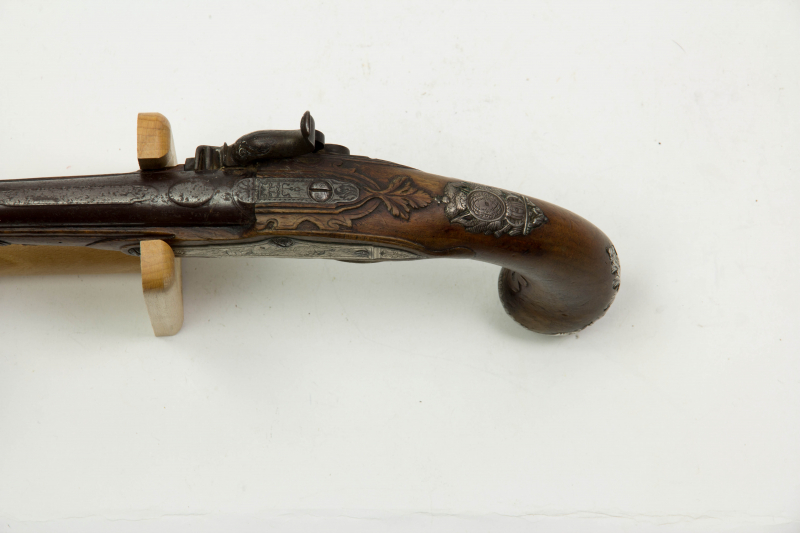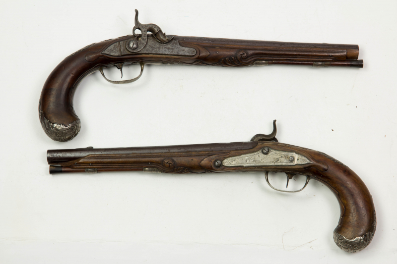 Paar Pistolen, Mitte 18. Jh., ehemals Steinschloss, um 1820 mit neuen Perkussionsschlössern verseheneGun-ID: 20267628