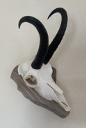 Gamskrucke, kapitaler Bock, auf Altholz präsentierteGun-ID: 20269350