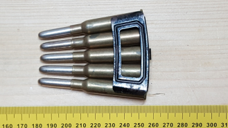 Sammlermunition: 5 Dekopatronen 6,5mm. Holland Mannlicher auf Ladestreifen.eGun-ID: 20271777 - Artikel-Nr des Verk.: 15