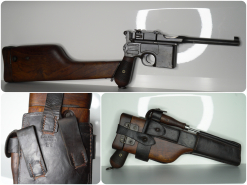 Sammlerwaffen/-munition > Kurzwaffen > 1900 - 1945 Mauser C96 / Oberndorf A. Neckar / 7,63 mm Mauser / 1916 / Anschlagkasten / Lederholster / MunitioneGun-ID: 20272270